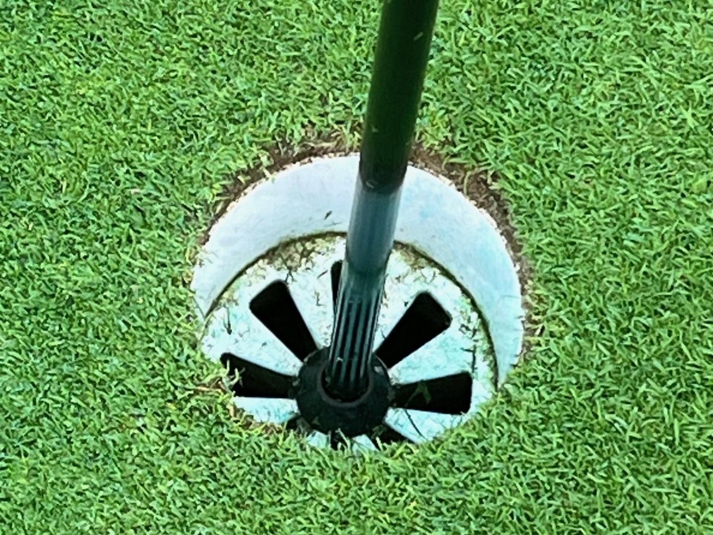 The greens really are superb though, and a pleasure to put on… there is something a little odd about their hue of green, which doesn’t seem to be of the same pallet as the rest of the landscape. Now, we’re not ones to cast aspersions, but can’t help wonder whether the pale green cups might be a clue to them having a little help… ‘Just for Greens’, or ‘Greencian 2000’ perhaps?!