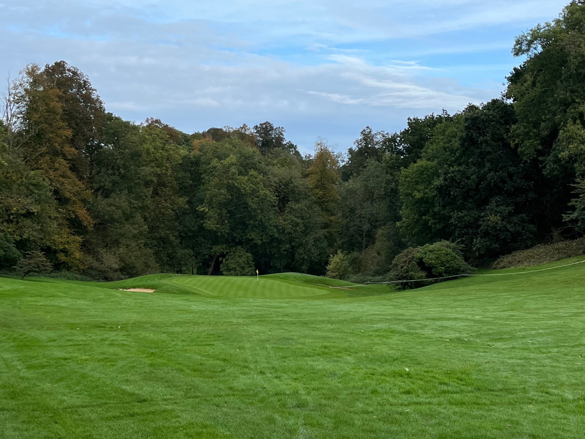 Onto the front 9 then, with a blind tee shot to start, over the horizon and into the valley, where the green is guarded by a meandering stream. There’s more water to contend with on the 2nd, in a sequence of holes that takes in beautiful mature woodland. The 8th deserves particular mention, as a dogleg left around (or if you’re brave or talented, over) the apex of trees, and down a hill to the pretty tree-fringed green far below.