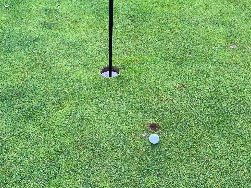 Well, our Hippo works wonders, and much like its namesake, seems to revel in the wet and muddy conditions! After saying goodbye to 6 balls on the first 4 holes, our Hippo is miraculously unlosable! What’s more, it seems to be performing superbly, flattering an approach shot under the gaze of those waving us through (see Exhibit A… and does that count as backspin?!) It makes one wonder, for the average golfer… do premium balls actually make any difference?