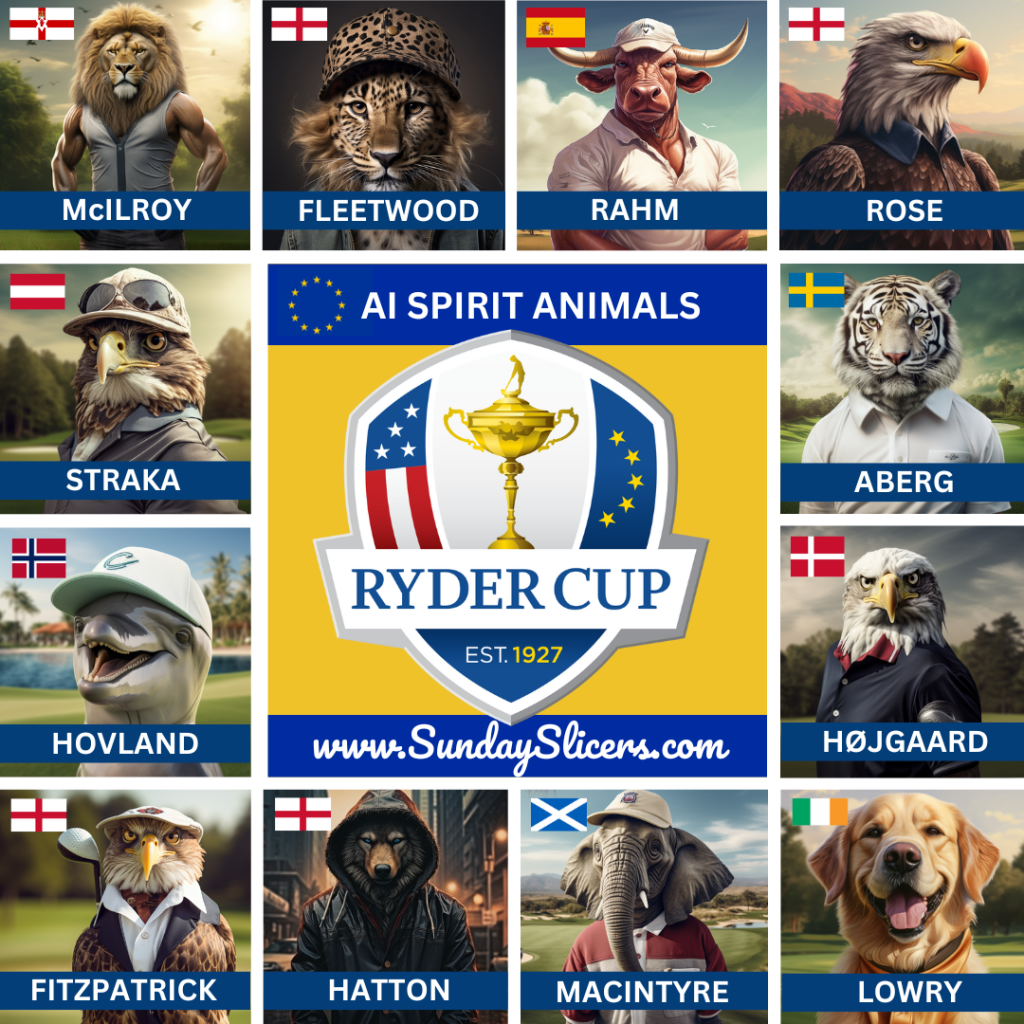 You’ve probably seen, with the rise and ever-growing sophistication of Artificial Intelligence, the ‘spirit’ of everything from banks to car brands are being ‘reimagined’ as animals. So, following a trial ahead of The Open a few months ago, we decided to expand out to cover all 12 of Luke Donald’s gladiators heading to Rome.