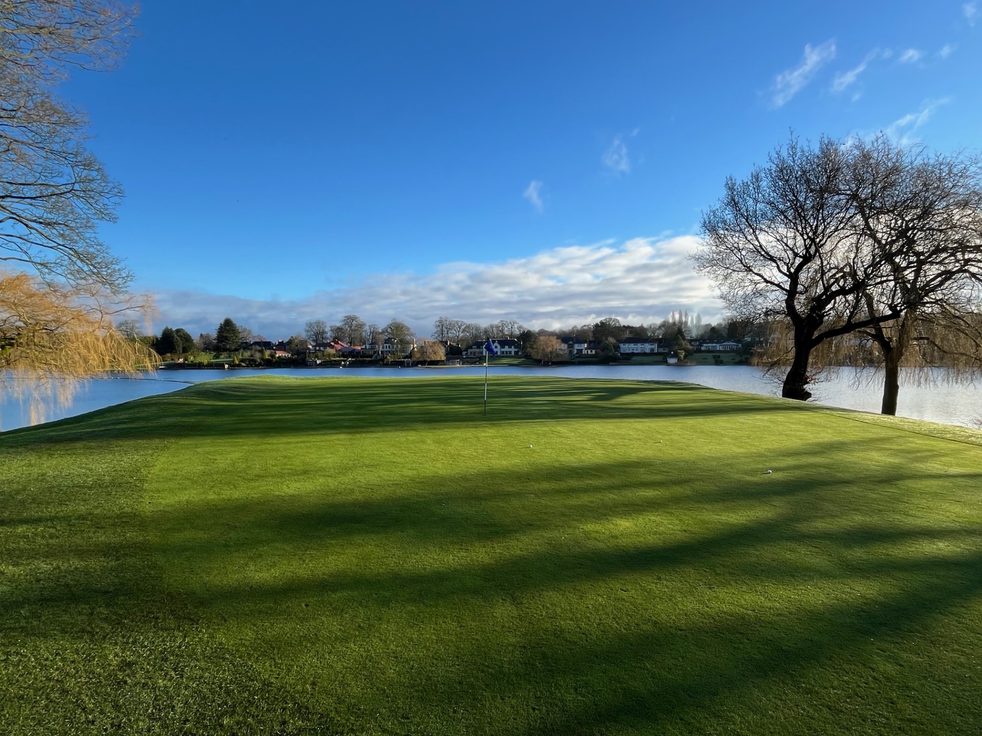 Identifying the signature hole provokes some debate, with some championing our 4th (15th ordinarily), with its dogleg left over valley and stream to two-tier green. For others, it had to be the 7th (usually the 18th), a true risk / reward hole, with the brave skirting the lake (the ‘Mere’ itself) that runs down the right side of this dogleg right. One thing’s for sure… the view over the footballers’ and millionaires’ lakeside mansions across the water from the clearing behind the green is utterly spectacular.