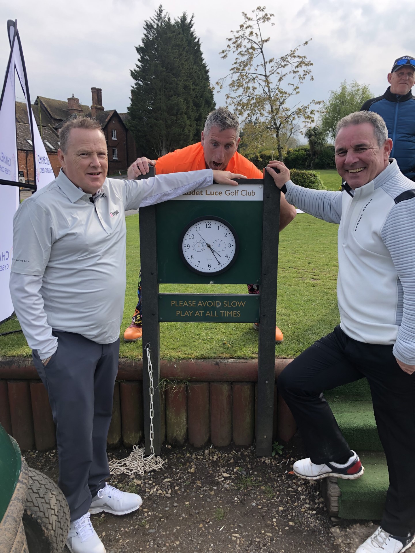4th – Billy with his guide Tony, leaning on the course clock